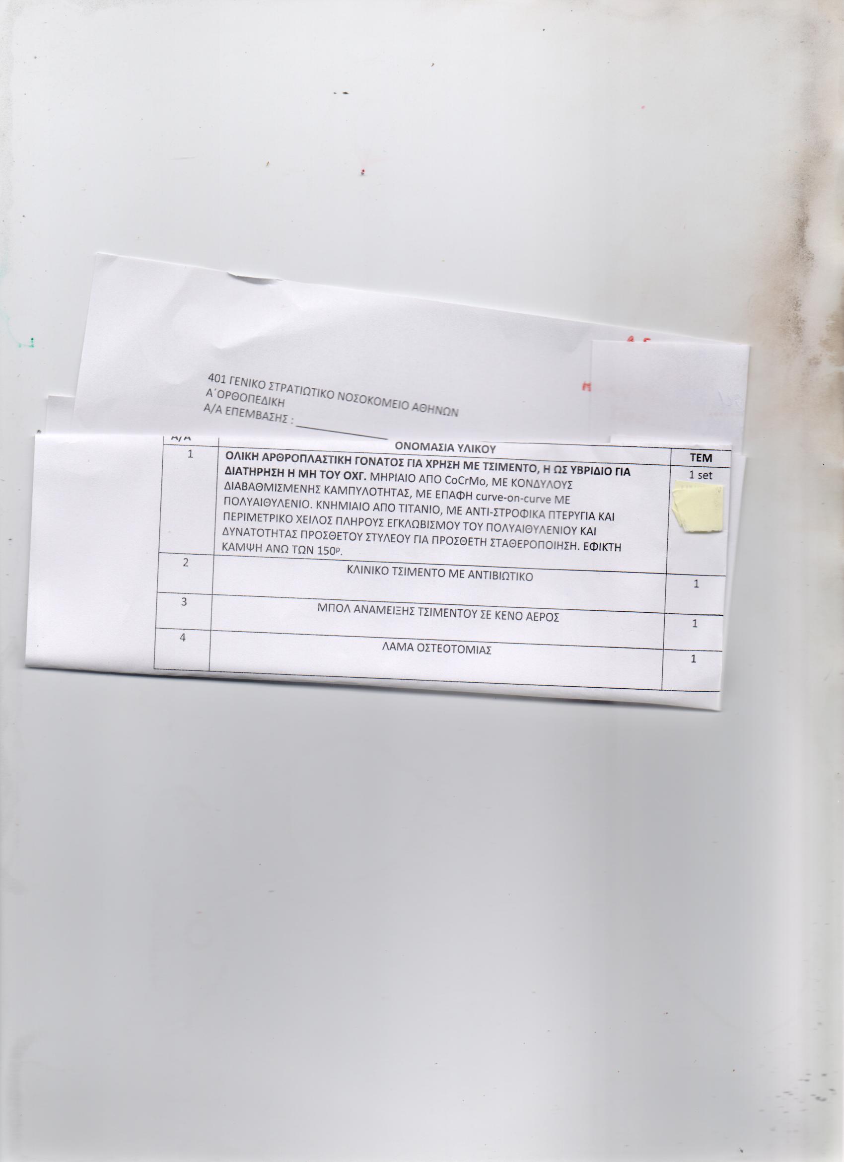 ΟΛΙΚΗ ΑΡΘΡΟΠΛΑΣΤΙΚΗ ΓΟΝΑΤΟΣ /ΚΛΙΝΙΚΟ ΤΣΙΜΕΝΤΟ ΜΕ ΑΝΤΙΒΙΩΤΙΚΟ/ΜΠΟΛ ΑΝΑΜΕΙΞΗΣ ΤΣΙΜΕΝΤΟΥ ΣΕ ΚΕΝΟ ΑΕΡΟΣ/ΛΑΜΑ ΟΣΤΕΟΤΟΜΙΑΣ (ΑΕ:2710)