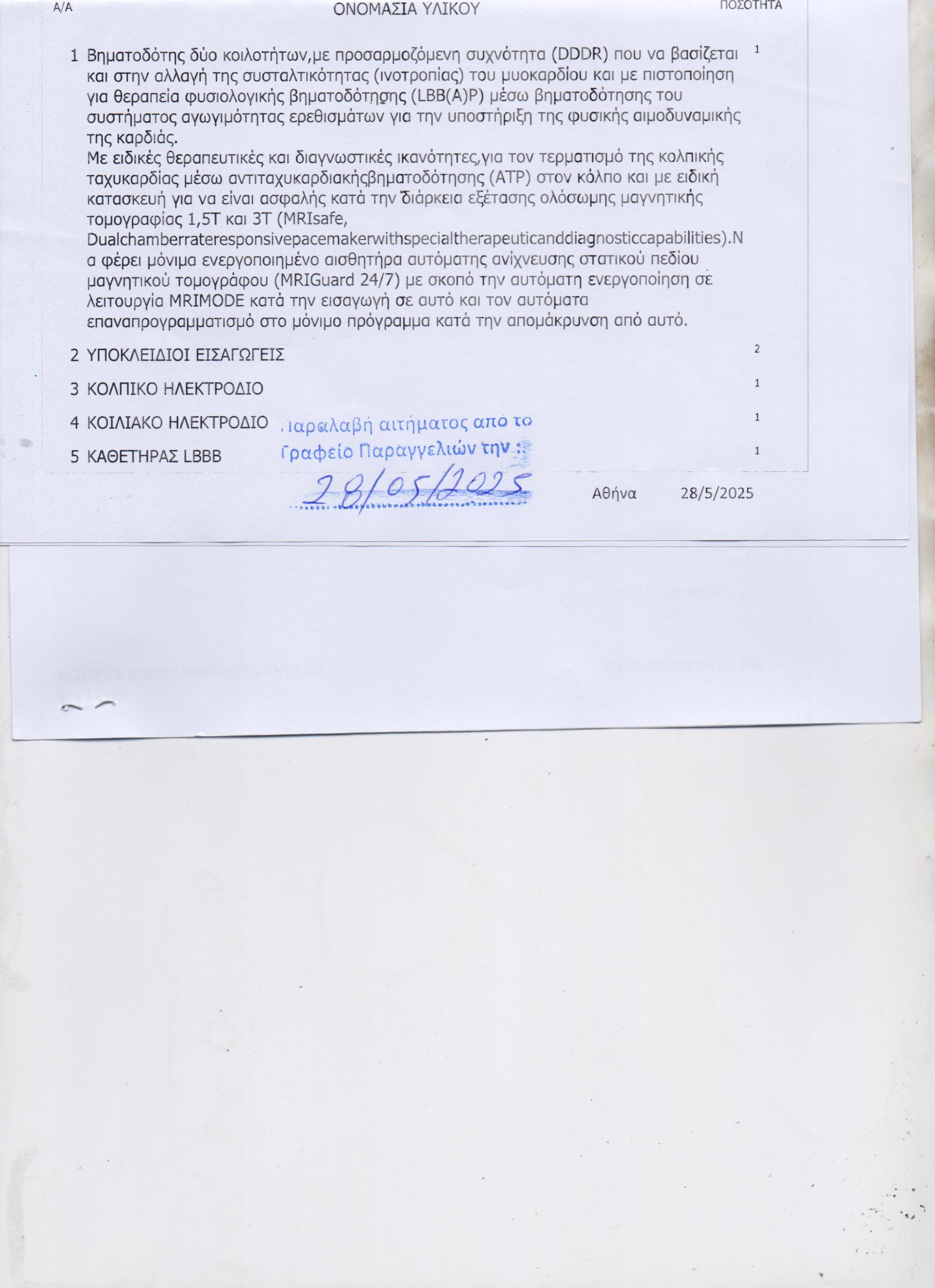 ΒΗΜΑΤΟΔΟΤΗΣ ΔΥΟ ΚΟΙΛΟΤΗΤΩΝ ME ΠΡΟΣΑΡΜΟΖΟΜΕΝΗ ΣΥΧΝΟΤΗΤΑ DDDR / ΥΠΟΚΛΕΙΔΙΟΙ ΕΙΣΑΓΩΓΕΙΣ/ ΚΟΛΠΙΚΟ ΗΛΕΚΤΡΟΔΙΟ/ ΚΟΙΛΙΑΚΟ ΗΛΕΚΤΡΟΔΙΟ/ ΚΑΘΕΤΗΡΑΣ LBBB (ΑΕ:1640)