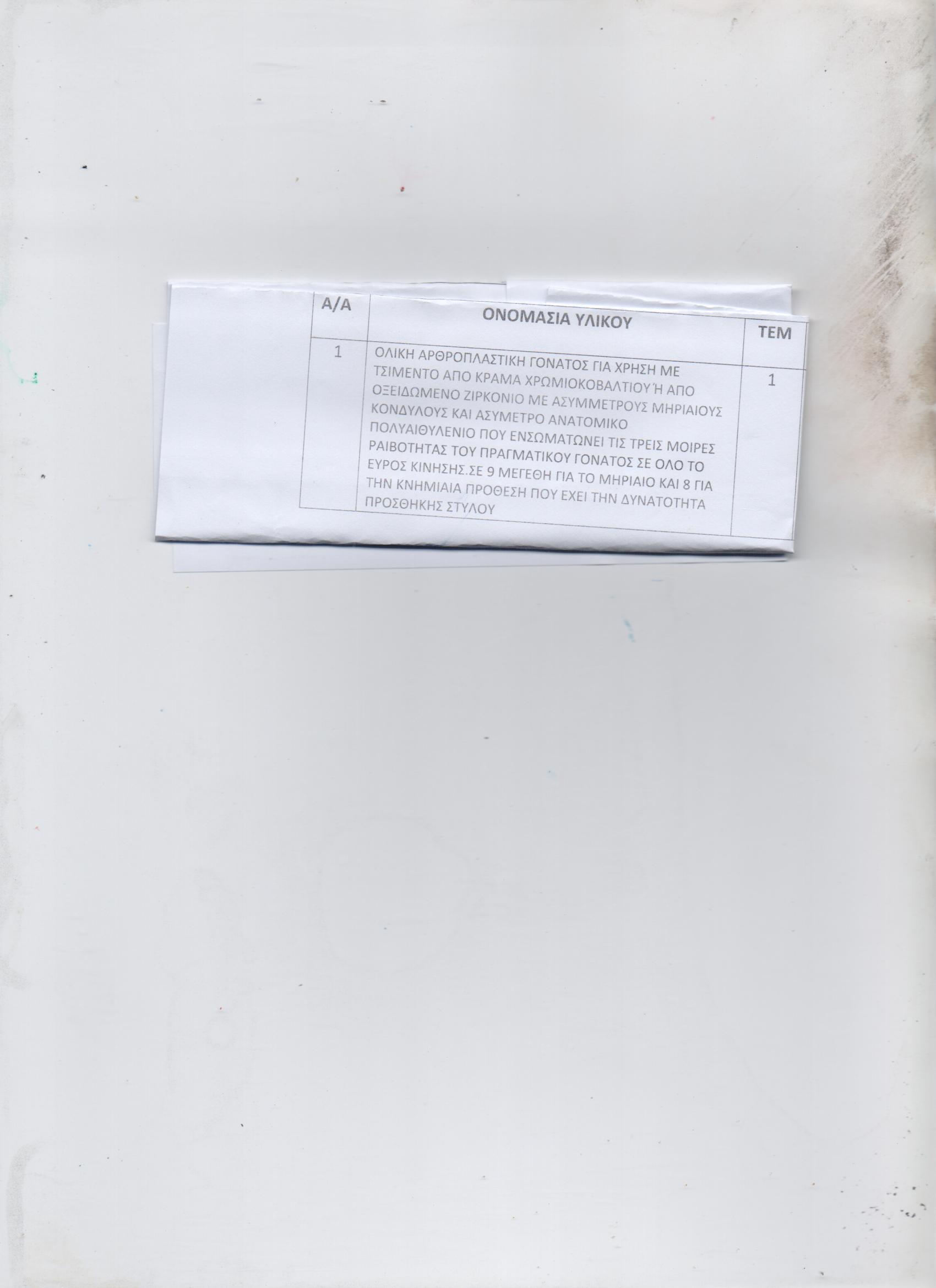 ΟΛΙΚΗ ΑΡΘΡΟΠΛΑΣΤΙΚΗ ΓΟΝΑΤΟΣ(EΠΑΝΑΛΗΨΗ ΑΝΑΡΤΗΣΗΣ) (ΑΕ:2982)
