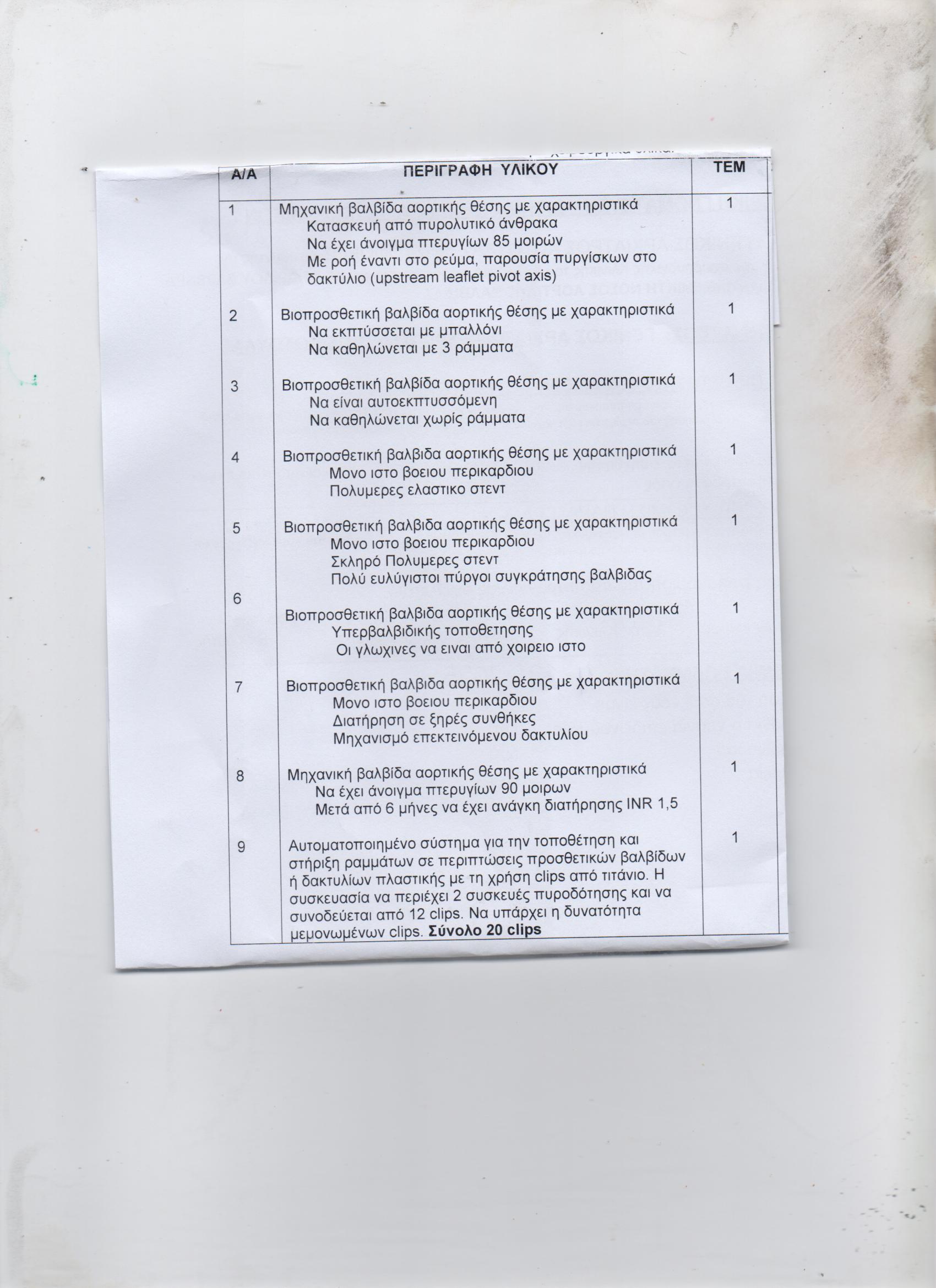 ΜΗΧΑΝΙΚΗ ΒΑΛΒΙΔΑ ΚΑΤΑΣΚΕΥΗ ΑΠΟ ΠΥΡΟΛΥΤΙΚΟ ΑΝΘΡΑΚΑ/ΒΙΟΠΡΟΣΘΕΤΙΚΗ ΒΑΛΒΙΔΑ ΝΑ ΕΚΠΤΥΣΣΕΤΑΙ ΜΕ ΜΠΑΛΟΝΙ/ΒΙΟΠΡΟΣΘΕΤΙΚΗ ΒΑΛΒΙΔΑ ΝΑ ΕΙΝΑΙ ΑΥΤΟΕΚΠΤΥΣΣΟΜΕΝΗ/ΒΙΟΠΡΟΣΘΕΤΙΚΗ ΒΑΛΒΙΔΑ ΜΟΝΟ ΙΣΤΟ ΒΟΕΙΟΥ ΠΕΡΙΚΑΡΔΙΟΥ/ΒΙΟΠΡΟΣΘΕΤΙΚΗ ΒΑΛΒΙΔΑ ΣΚΛΗΡΟ ΠΟΛΥΜΕΡΕΣ ΣΤΕΝΤ/ΒΙΟΠΡΟΣΘΕΤΙΚΗ ΒΑΛΒΙΔΑ ΥΠΕΡΒΑΛΒΙΔΙΚΗΣ ΤΟΠΟΘΕΤΗΣΗΣ/ΒΙΟΠΡΟΣΘΕΤΙΚΗ ΒΑΛΒΙΔΑ ΔΙΑΤΗΡΗΣΗ ΣΕ ΞΗΡΕΣ ΣΥΝΘΗΚΕΣ/ΜΗΧΑΝΙΚΗ ΒΑΛΒΙΔΑ ΝΑ ΕΧΕΙ ΑΝΟΙΓΜΑ ΠΤΕΡΥΓΙΩΝ 90 ΜΟΙΡΩΝ /ΑΥΤΟΜΑΤΟΠΟΙΗΜΕΝΟ ΣΥΣΤΗΜΑ (ΑΕ:3534)