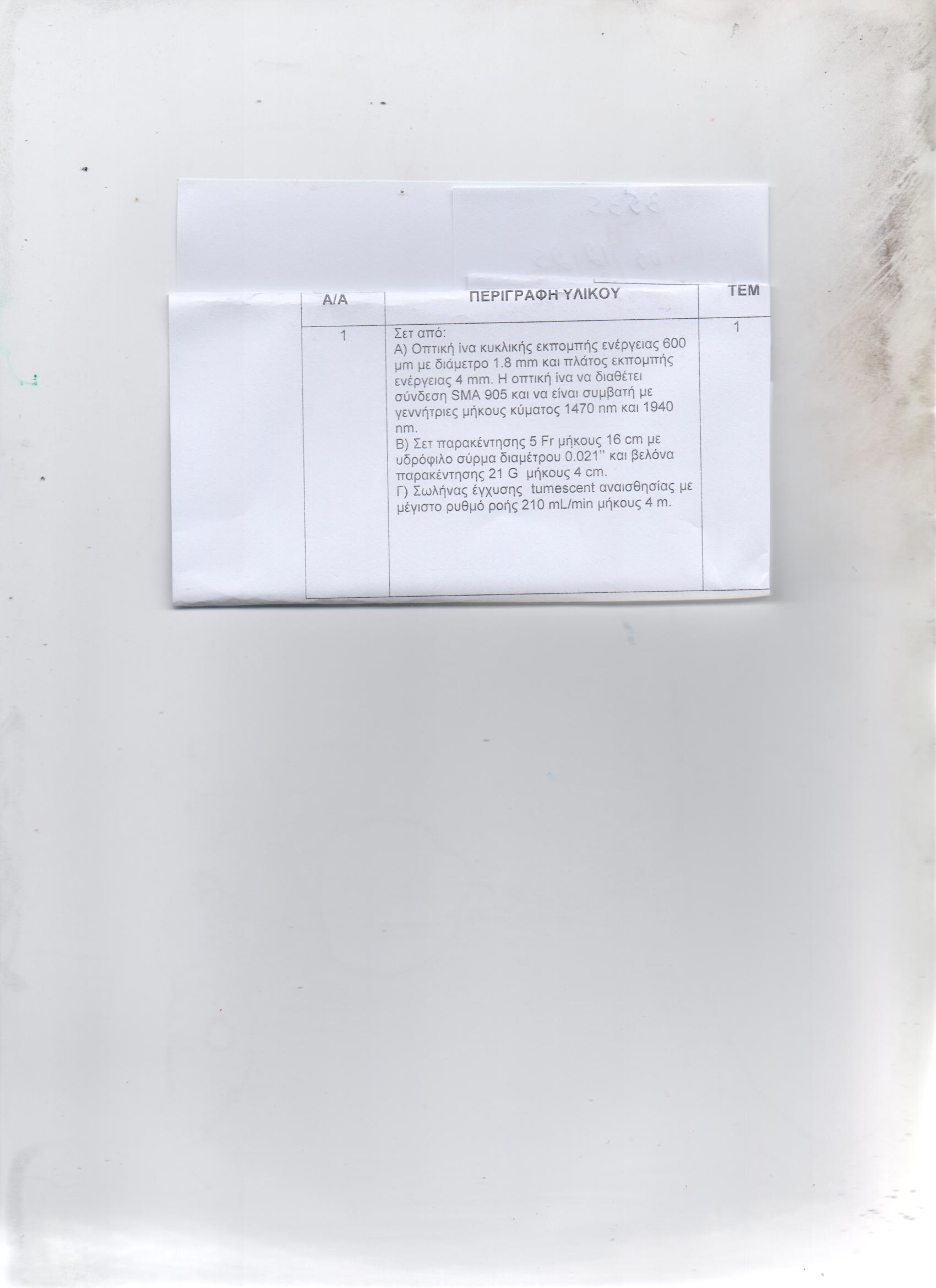 ΣΕΤ ΟΠΤΙΚΗ ΙΝΑ /ΣΕΤ ΠΑΡΑΚΕΝΤΗΣΗΣ /ΣΩΛΗΝΑΣ ΕΓΧΥΣΗΣ (ΑΕ:3535)