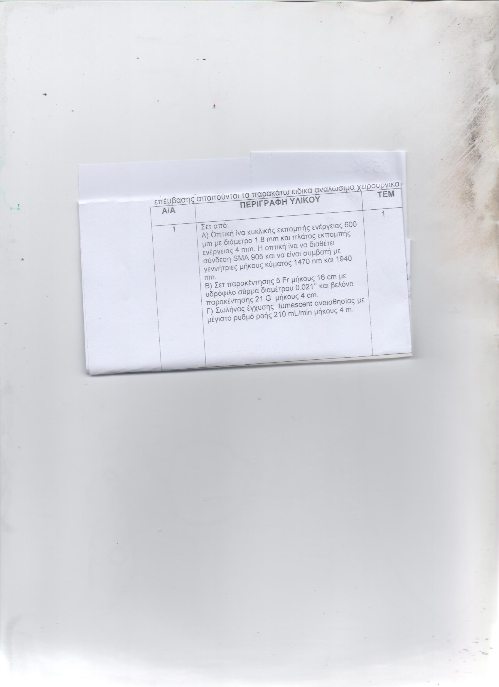 ΣΕΤ ΟΠΤΙΚΗ ΙΝΑ /ΣΕΤ ΠΑΡΑΚΕΝΤΗΣΗΣ /ΣΩΛΗΝΑΣ ΕΓΧΥΣΗΣ (ΑΕ:3536)
