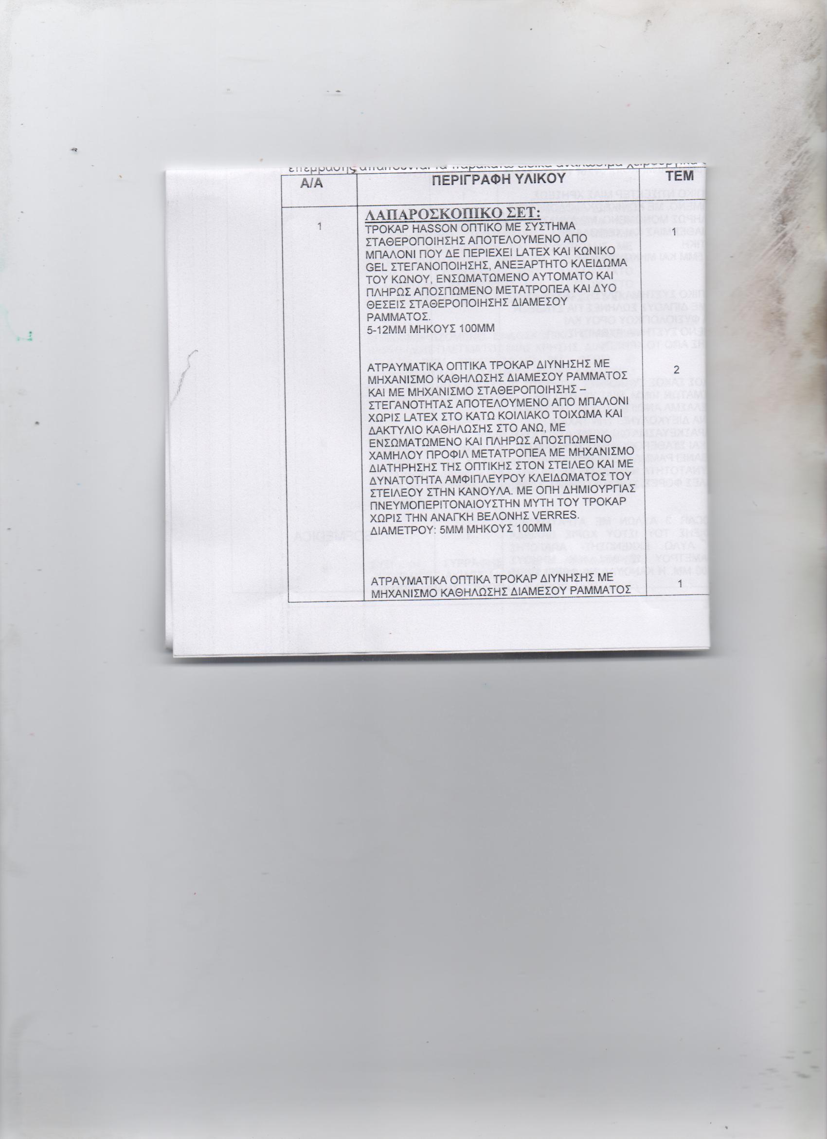 ΤΡΟΚΑΡ HASSON ΟΠΤΙΚΟ ΣΥΣΤΗΜΑ ΣΤΑΘΕΡΟΠΟΙΗΣΗΣ/ΟΠΤΙΚΟ TROCAR 3ΑΥΛΩΝ/ΣΩΛΗΝΑΣ ΠΑΡΟΧΗΣ CO2/ΔΙΑΦΑΝΟΗΜΙΑΠΟΡΡΟΦΗΣΙΜΟ ΠΛΕΓΜΑ 2,1ΜΜΧ3,0ΜΜ/ΔΙΑΦΑΝΟ ΗΜΙΑΠΟΡΡΟΦΗΣΙΜΟ ΠΛΕΓΜΑ 15Χ10ΕΚ/ΔΙΑΦΑΝΟ ΗΜΙΑΠΟΡΡΟΦΗΣΙΜΟΠΛΕΓΜΑ20Χ15ΕΚ/ΕΠΑΝΑΦΟΡΤΙΖΟΜΕΝΟ ΕΝΔΟΣΚΟΠΙΚΟ ΕΡΓΑΛΕΙΟ ΚΑΘΗΛΩΣΗΣ ΠΛΕΓΜΑΤΟΣ/ΑΝΤΑΛΛΑΚΤΙΚΗ ΚΕΦΑΛΗ/ΣΥΣΚΕΥΗ ΣΥΡΡΑΦΗΣ /ΕΡΓΑΛΕΙΟ ΣΥΛΛΗΨΗΣ ΚΑΙ ΚΑΘΗΛΩΣΗΣ ΡΑΜΜΑΤΩΝ (ΑΕ:3592)