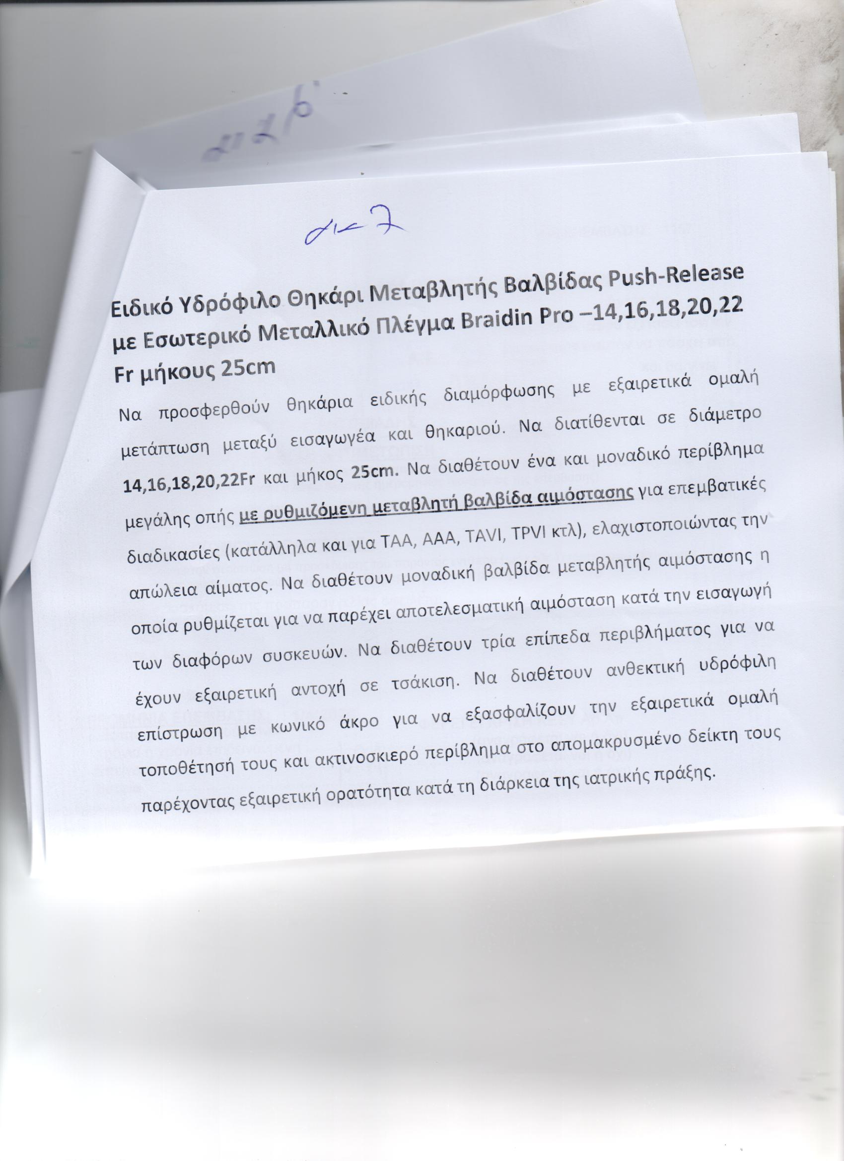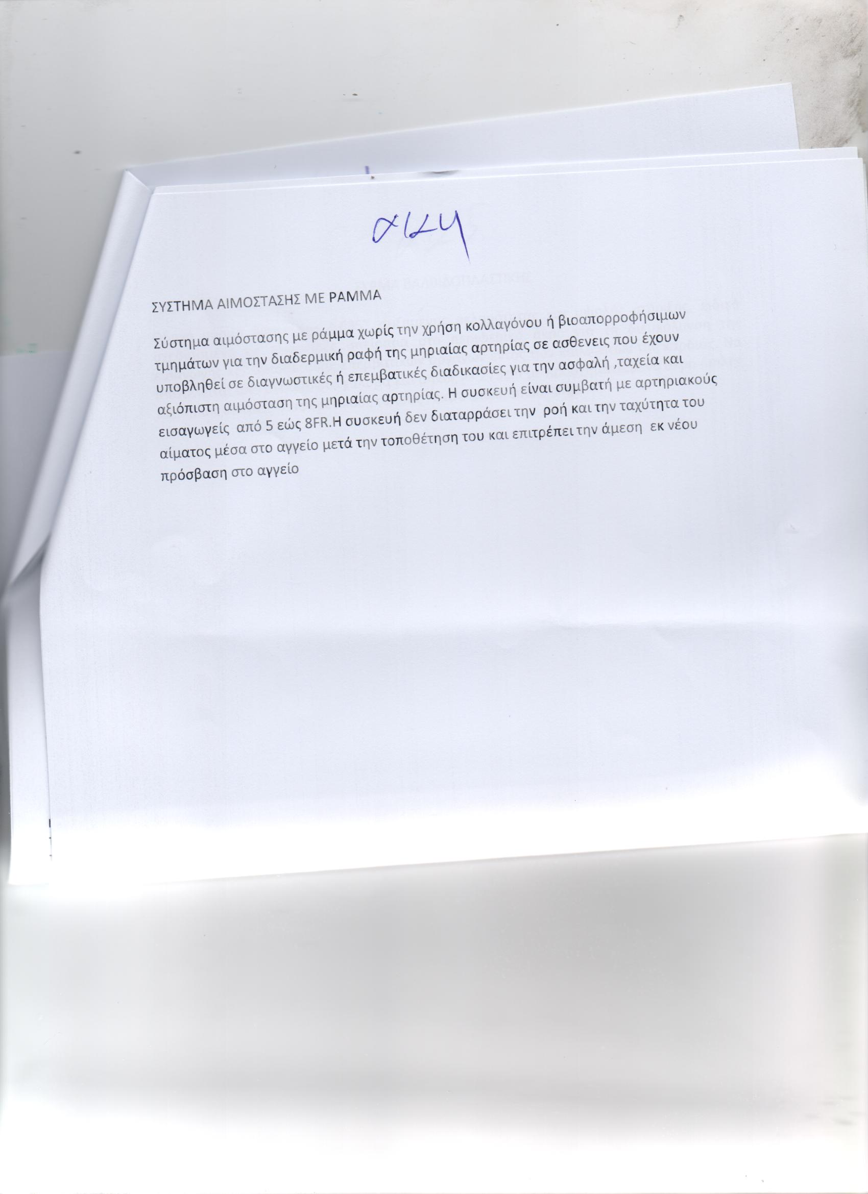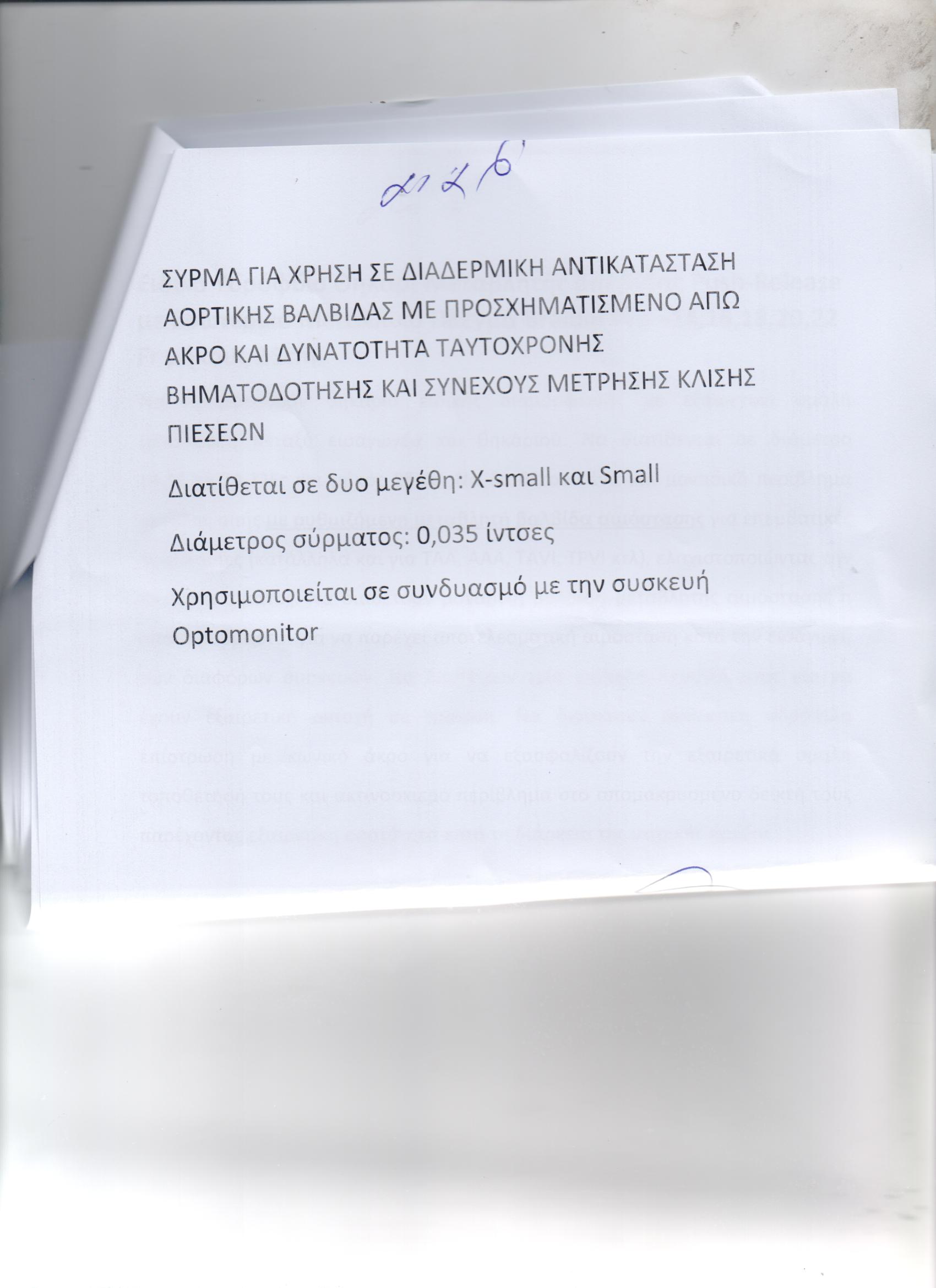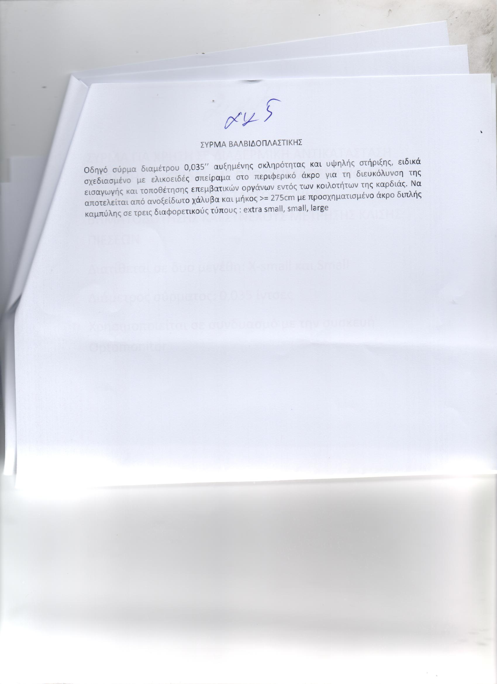 ΔΙΑΔΕΡΜΙΚΗ ΑΟΡΤΙΚΗ ΒΑΛΒΙΔΑ/ΜΠΑΛΟΝΙ ΒΑΛΒΙΔΟΠΛΑΣΤΙΚΗΣ ΥΨΗΛΩΝ ΠΙΕΣΕΩΝ/ΠΕΡΙΦΕΡΙΚΑ COVERED STENTS/ΣΥΣΚΕΥΗ ΣΥΓΚΛΙΣΗΣ ΜΗΡΙΑΙΑΣ ΑΡΤΗΡΙΑΣ /ΕΙΔΙΚΟΣ ΣΥΡΜΑΤΙΝΟΣ ΟΔΗΓΟΣ/ΕΙΔΙΚΟΣ ΣΥΡΜΑΤΙΝΟΣ ΟΔΗΓΟΣ /ΘΗΚΑΡΙΑ (ΑΕ:950)
