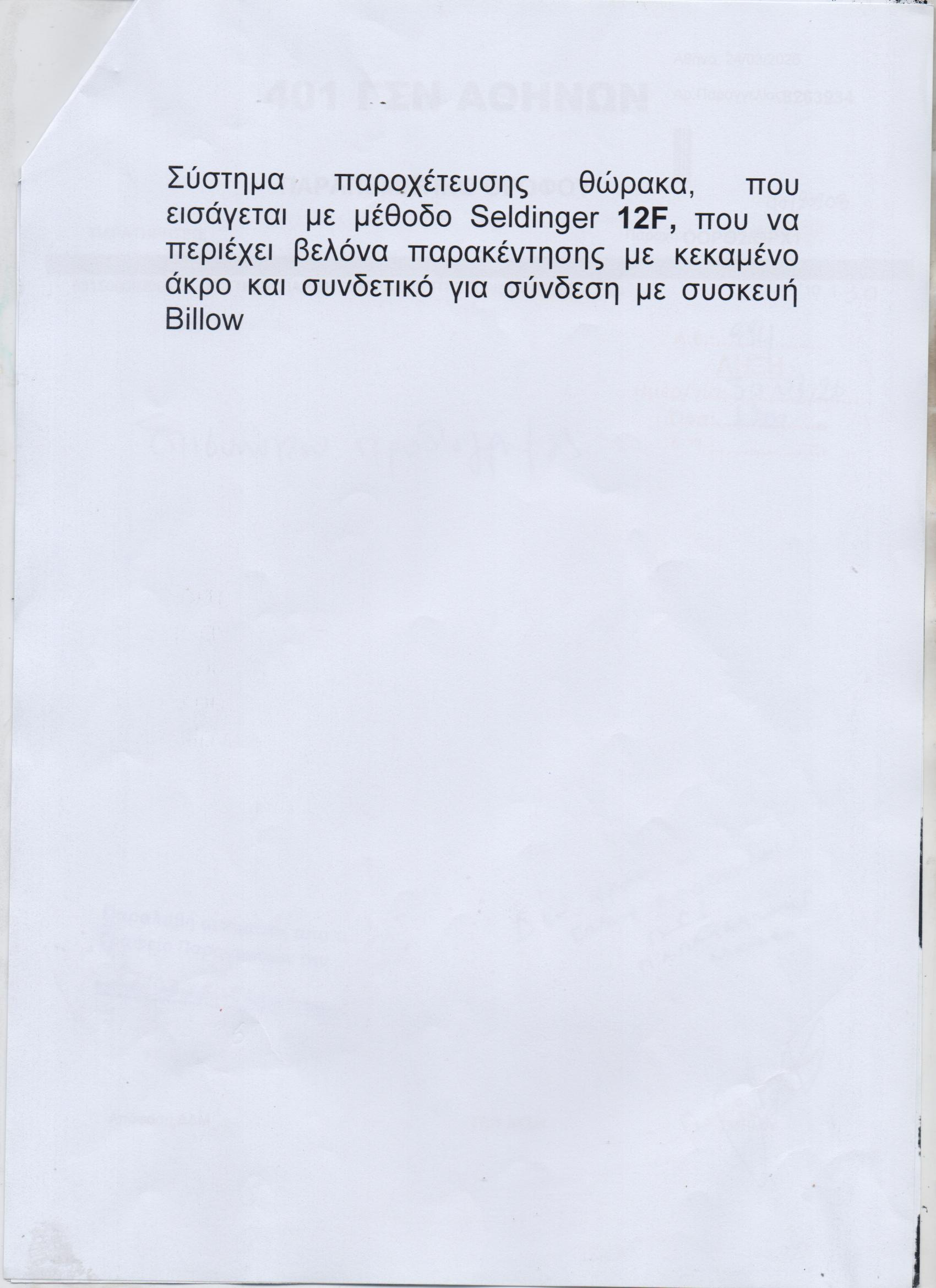 ΣΥΣΤΗΜΑ ΠΑΡ/ΣΗΣ ΘΩΡΑΚΟΣ ΤΠ SELDINGER 12FR (ΕΠΑΝΑΛΗΨΗ ΑΝΑΡΤΗΣΗΣ)(AE:994)