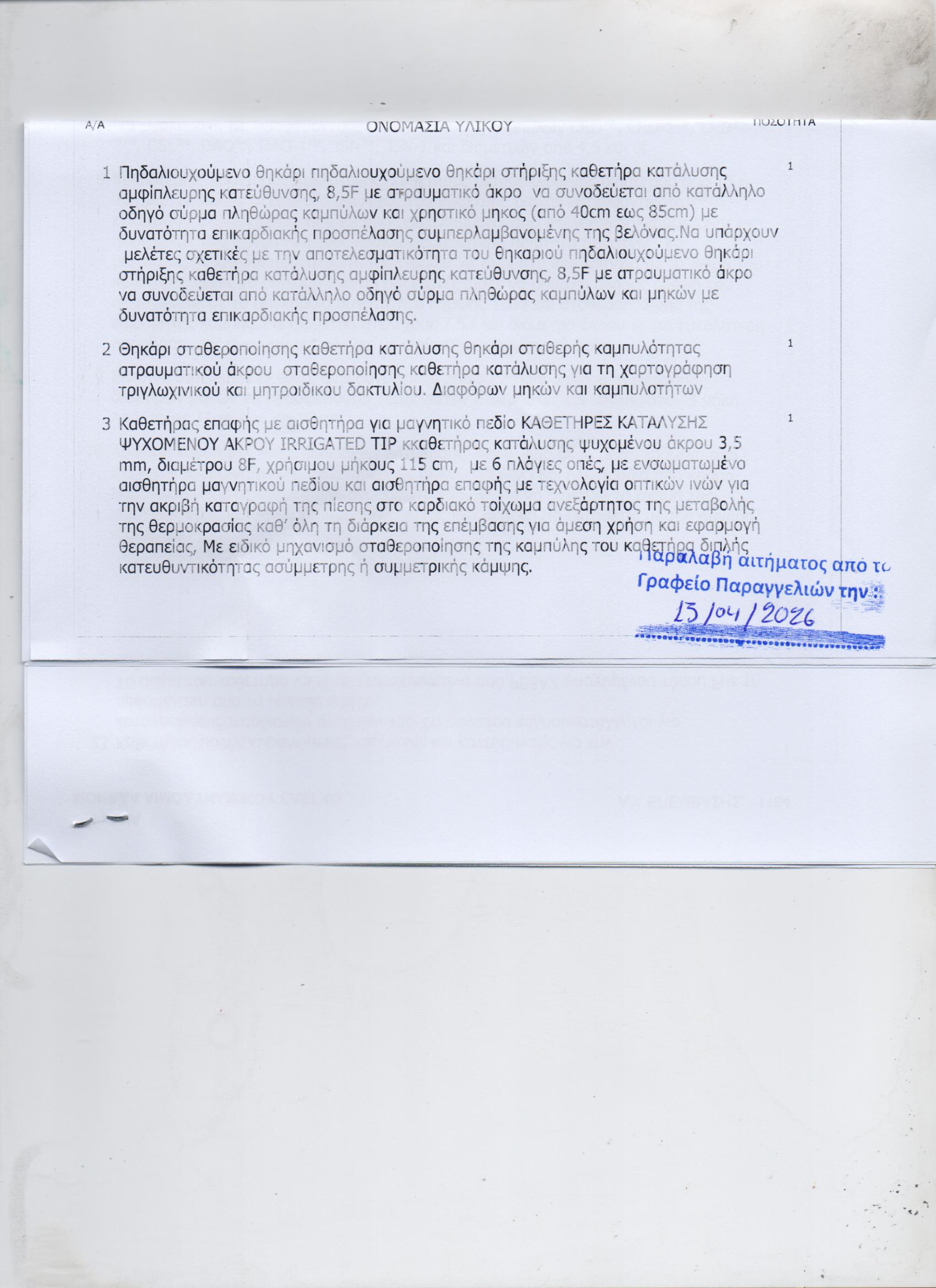 ΠΗΔΑΛΙΟΧΟΥΜΕΝΟ ΘΗΚΑΡΙ /ΘΗΚΑΡΙ ΣΤΑΘΕΡΟΠΟΙΗΣΗΣ ΚΑΘΕΤΗΡΑ/ΚΑΘΕΤΗΡΑΣ ΕΠΑΦΗΣ/ΚΑΘΕΤΗΡΑΣ ΨΥΧΟΜΕΝΟΥ ΑΚΡΟΥ/ΚΑΘΕΤΗΡΑΣ STREERABLE 10 ΠΟΛΙΚΟΣ /ΚΑΘΕΤΗΡΑΣ STEERABLE 4ΠΟΛΙΚΟΣ /10 ΠΟΛΙΚΟΣ FIXED CURVE/ΚΥΚΛΟΤΕΡΗΣ ΚΑΘΕΤΗΡΑΣ/ΒΕΛΟΝΕΣ TRANSEPTALL/ABLATION ΚΑΘΕΤΗΡΑΣ 4mm/ABLATION ΚΑΘΕΤΗΡΑΣ 8mm /20 ΠΟΛΙΚΟΣ ΚΑΘΕΤΗΡΑΣ /ΣΥΝΔΕΤΙΚΑ 4ΠΟΛΙΚΩΝ ΚΑΘΕΤΗΡΩΝ/ΣΥΝΔΕΤΙΚΑ 10 ΠΟΛΙΚΩΝ ΚΑΘΕΤΗΡΩΝ /ΣΥΝΔΕΤΙΚΑ 20ΠΟΛΙΚΩΝ ΚΑΘΕΤΗΡΩΝ/ΣΥΝΔΕΤΙΚΑ ΚΑΘΕΤΗΡΩΝ ΚΑΤΑΛΥΣΗΣ /ΣΥΝΔΕΤΙΚΑ ΚΑΘΕΤΗΡΑ ΜΕ ΑΝΤΛΙΑ/ΚΑΘΕΤΗΡΑΣ ΧΑΡΤΟΓΡΑΦΗΣΗΣ /ΗΛΔΙΑ ΗΛΕΚΤΡΟΑΝΑΤΟΜΗΚΗΣ ΧΑΡΤΟΓΡΑΦΗΣΗΣ/ΒΕΛΟΝΑ ΔΙΑΦΡΑΓΜΑΤΙΚΗΣ ΠΑΡΑΚΕΝΤΗΣΗΣ 18ga/ΘΗΚΑΡΙΑ 8-10FR /ΚΑΘΕΤΗΡΑΣ ΕΝΔΟΚΑΡΔΙΑΚΟΥ ΥΠΕΡΗΧΟΥ/ΚΑΘΕΤΗΡΑΣ ΜΟΝΗΣ ΚΥΜΑΙΝΟΜΕΝΗΣ ΚΑΜΠΥΛΗΣ/ΣΥΝΔΕΤΙΚΟ ΗΛΕΚΤΡΟΔΙΟ ΓΙΑ ΤΟΝ ΑΝΩΤΕΡΟ ΚΑΘΕΤΗΡΑ (ΑΕ:1180)