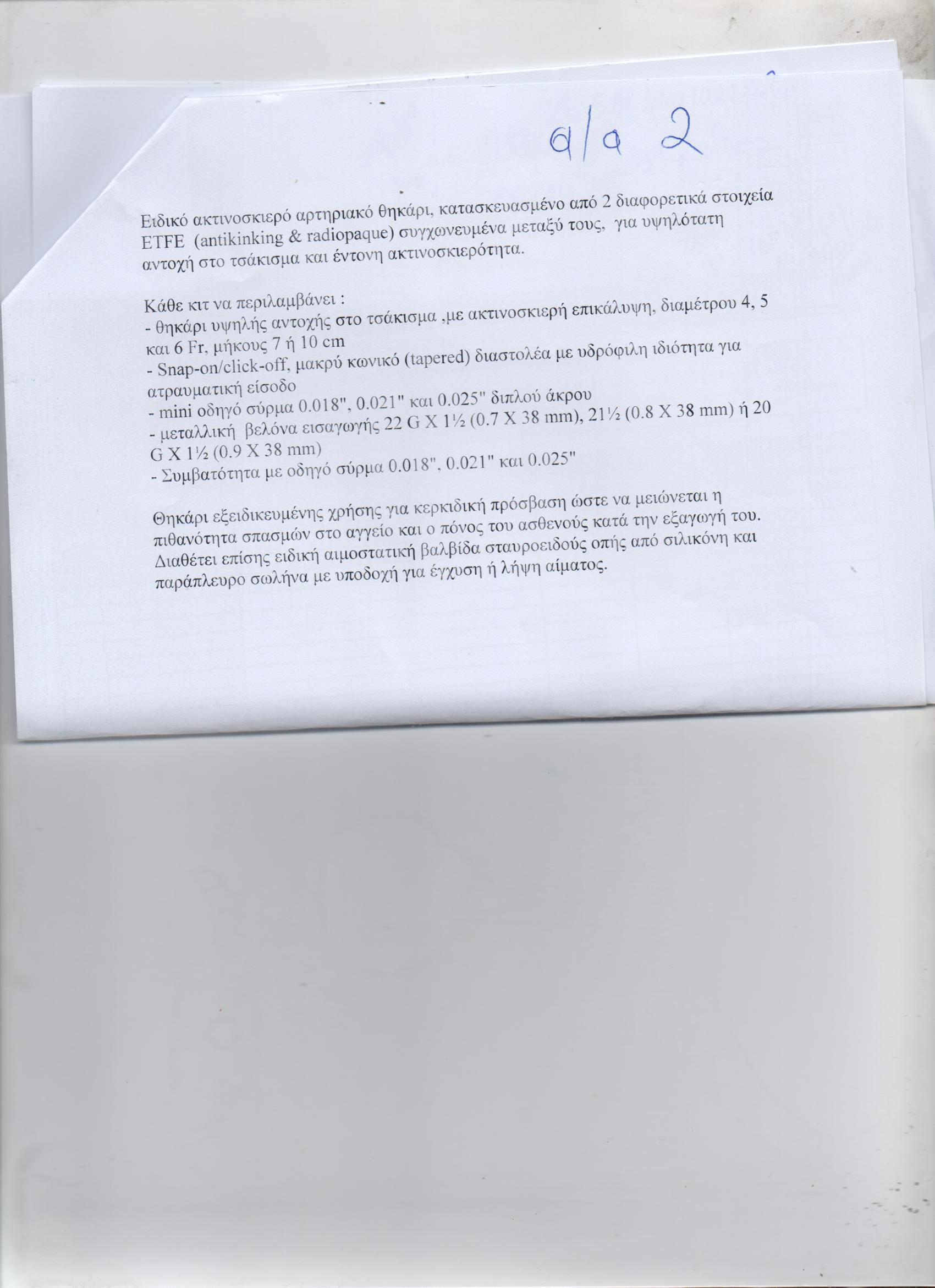 ΣΕΤ ΗΜΕΡΑΣ ΕΓΧΥΤΗ ΑΣΘΕΝΟΥΣ CT MX /ΘΗΚΑΡΙΑ ΕΙΣΑΓ ΚΑΘΕΤ.ΚΕΡΚΙΔΙΚΗΣ 10cm 5FR (AE:1199)