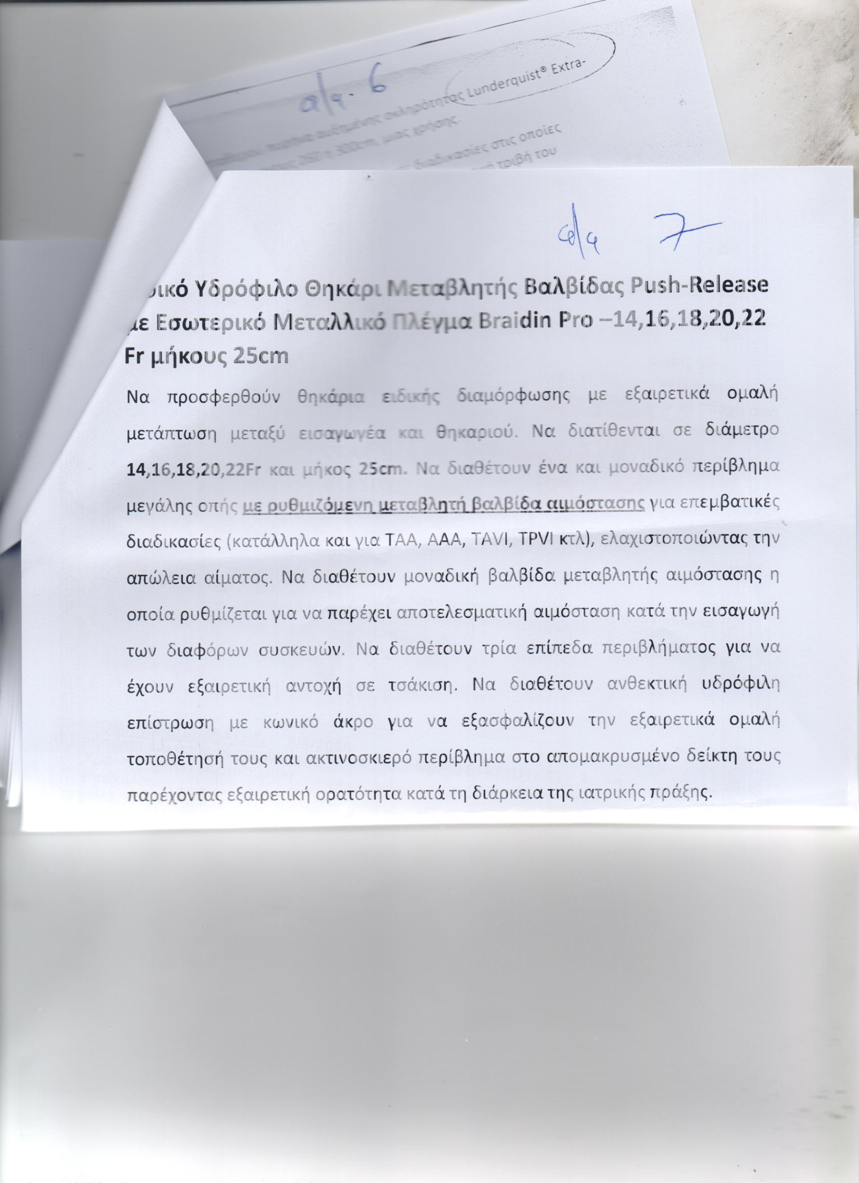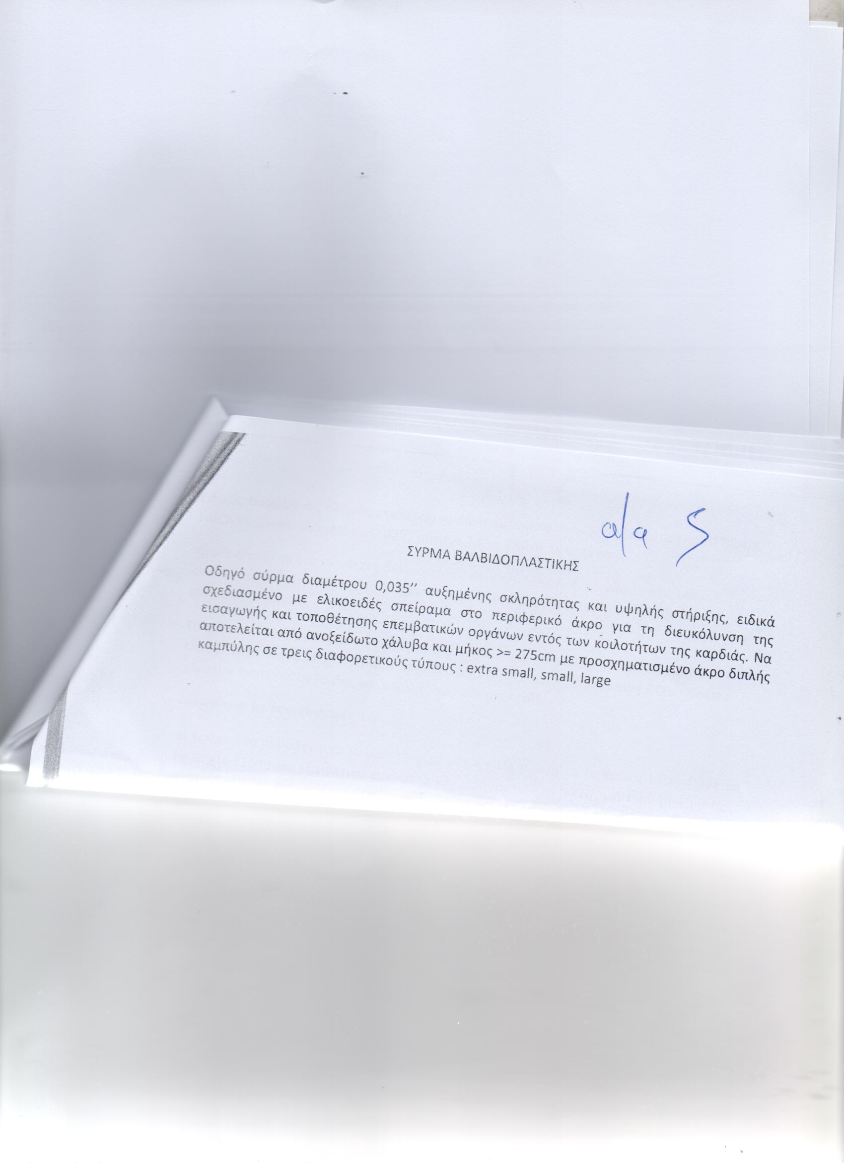 ΔΙΑΔΕΡΜΙΚΗ ΑΟΡΤΙΚΗ ΒΑΛΒΙΔΑ/ΜΠΑΛΟΝΙ ΒΑΛΒΙΔΟΠΛΑΣΤΙΚΗΣ ΥΨΗΛΩΝ ΠΙΕΣΕΩΝ/ΠΕΡΙΦΕΡΙΚΑ COVERED STENTS/ΣΥΣΚΕΥΗ ΣΥΓΚΛΙΣΗΣ ΜΗΡΙΑΙΑΣ ΑΡΤΗΡΙΑΣ /ΕΙΔΙΚΟΣ ΣΥΡΜΑΤΙΝΟΣ ΟΔΗΓΟΣ/ΕΙΔΙΚΟΣ ΣΥΡΜΑΤΙΝΟΣ ΟΔΗΓΟΣ /ΘΗΚΑΡΙΑ (ΑΕ:1287