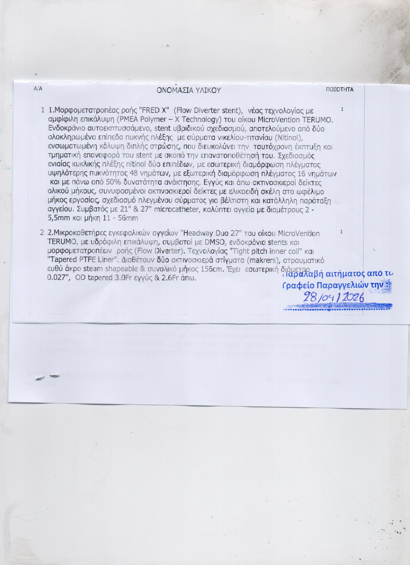 ΜΟΡΦΟΜΕΤΑΤΡΟΠΕΑΣ ΡΟΗΣ "FRED X" /ΜΙΚΡΟΚΑΘΕΤΗΡΑΣ ΕΓΚΕΦΑΛΙΚΩΝ ΑΓΓΕΙΩΝ HEADWAY DUO 27/ΕΙΔΙΚΟΣ ΥΒΡΙΔΙΚΟΣ ΚΑΘΕΤΗΡΑΣ ΕΝΔΟΚΡΑΝΙΑΣ ΠΡΟΣΒΑΣΗΣ/ΜΙΚΡΟΣΥΡΜΑ (ΑΕ:1298)